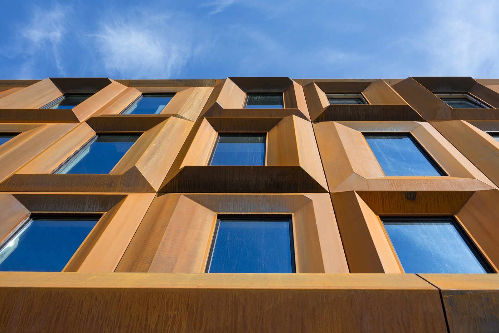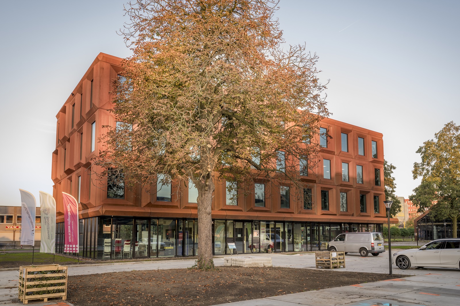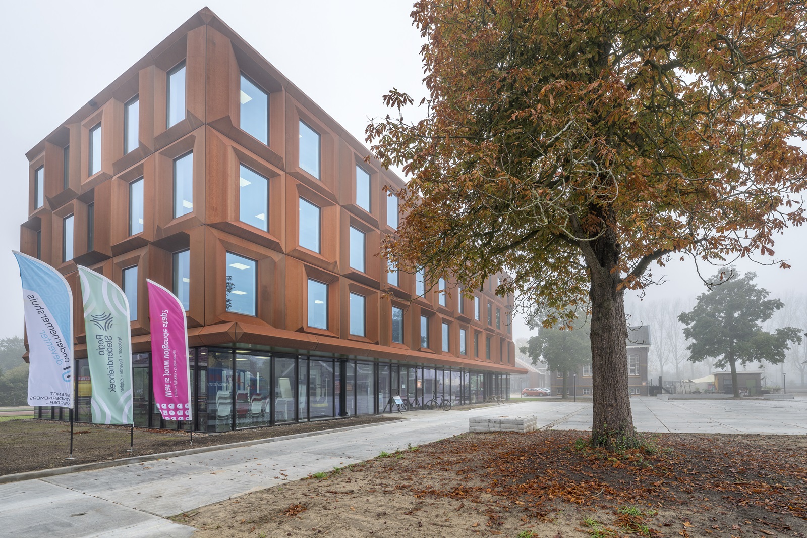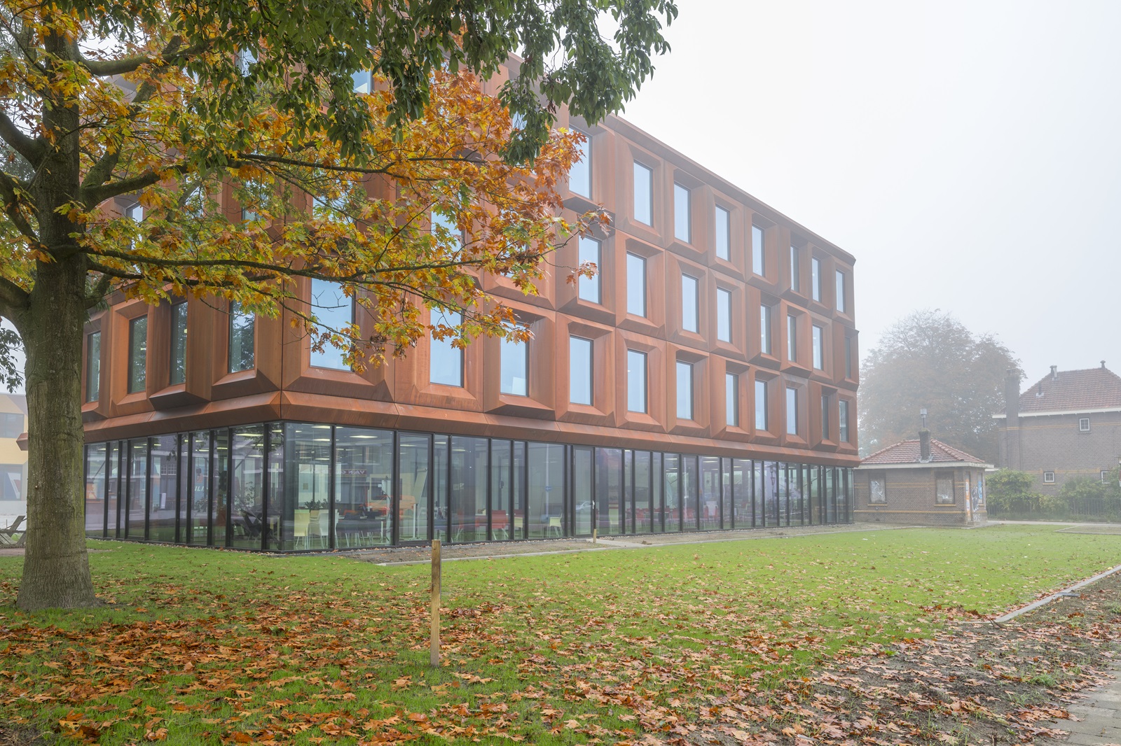 Voor de nieuwe ontwikkelingen op de campus zijn een tweetal architectuur expressies bedacht. De eerste benadering is de ‘homogene uitbreiding’ direct op bestaande bebouwing conform de reeds ingeslagen route bij het regulatiehuis. Dit is altijd een uitbreiding die recht doet aan het uit te breiden deel en deze is dan vrij homogeen en eenduidig waardoor de rijke expressie van het bestaande gebouw blijft spreken en zeker niet wordt ‘overschreeuwd’. Ook hier is het verbindende materiaal voor de gevel cortenstaal.