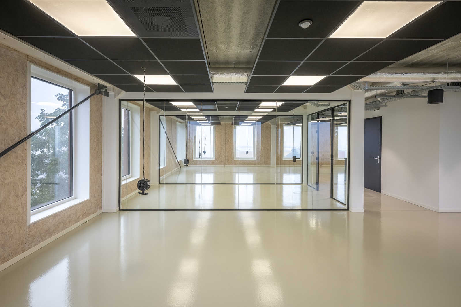 De tweede benadering is het expo gebouw. Het betreft een architectuur die expressief en eigenzinnig is waardoor het campusgevoel wordt onderstreept. Een expo gebouw is vrijstaand en autonoom. Het heeft een gevelbeeld dat eigentijds is en geen klassiek opbouw kent zoals de bestaande authentieke gebouwen. Maar ook hiervoor is het verbindende materiaal voor de gevel cortenstaal. Door deze benadering ontstaat er een familie van verschillende ingrediënten; bestaande gebouwen, homogene uitbreidingen en de expo gebouwen. Het trafohuis en het kantoor wordt door Jimki Design & Art studio voorzien van een muurschildering met afgestemde kleuren. Door deze ‘familie’ fraai te mixen op het terrein ontstaat er een aantrekkelijk samenhangend totaalbeeld #ThuisVoelen.