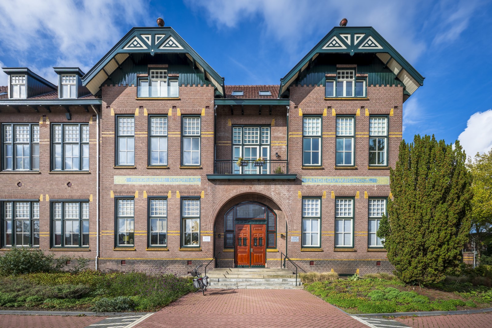 Het oorspronkelijke gebouw uit 1912 en 1928 blijft behouden. De naoorlogse uitbreidingen worden grotendeels gesloopt maar blijven in het terrein zichtbaar. Hierdoor komt de oorspronkelijke architectuur van architect Holgen weer tot zijn recht maar blijft de groei van het schoolcomplex visueel leesbaar. De koppen van de te slopen naoorlogse uitbreidingen, worden geaccentueerd door slank gedetailleerde puien. De woningen met een tuin in het monument en de nieuwbouw komen ook grote aluminium puien die zorgen voor veel daglicht en vooral zicht op de bijzonder binnentuin. De indeling van de puien verwijst naar de architectuur van de kassen die in de tuin hebben gestaan. De oudste delen van het rijksmonument kenmerken zich door een sterk ritme van symmetrisch ingedeelde gevel vakken, onderbroken door belangrijke accenten zoals de entree en trappenhuis. Aan de straatzijdes is herstel en behoud van het huidige voorname gevels een belangrijk doel. Aan de binnentuin zijn ingrepen zoals balkons gesitueerd om een aangenaam woonprogramma mogelijk te maken. De oorspronkelijke gang structuur die karakteristiek is voor de school, deze gaat deels op in de appartementen. Op deze plekken ‘schuurt’ het oude en nieuwe programma en blijft de gang voelbaar. Zo ontstaan na veel puzzelwerk unieke appartementen in dit historische pand.
